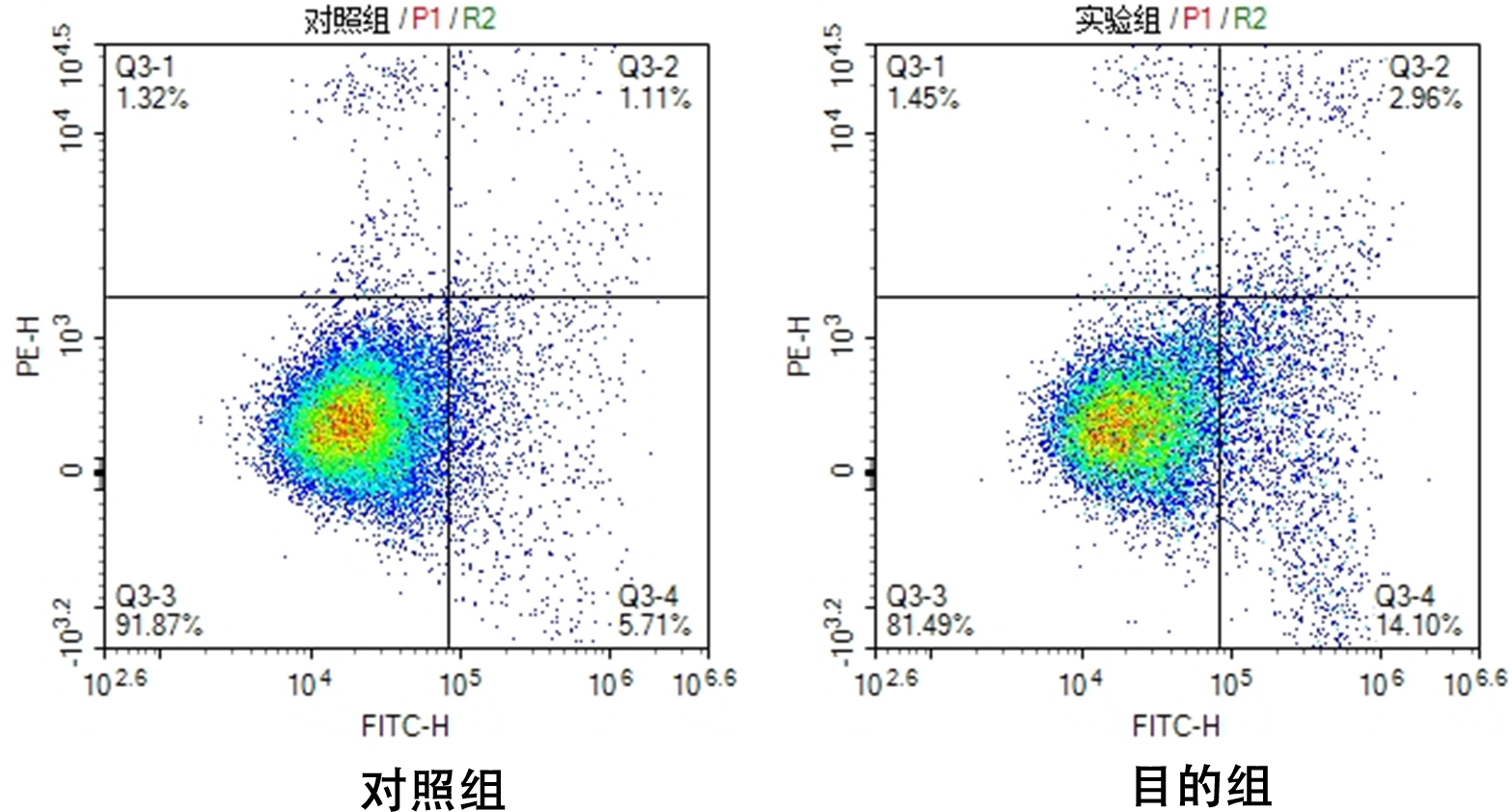 流式细胞检测:Annexin V-FITC/PI双染区分早期凋亡、晚期凋亡及坏死细胞。